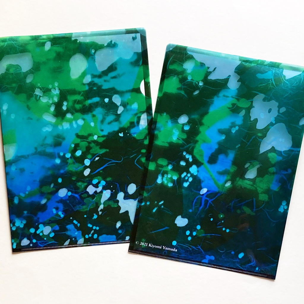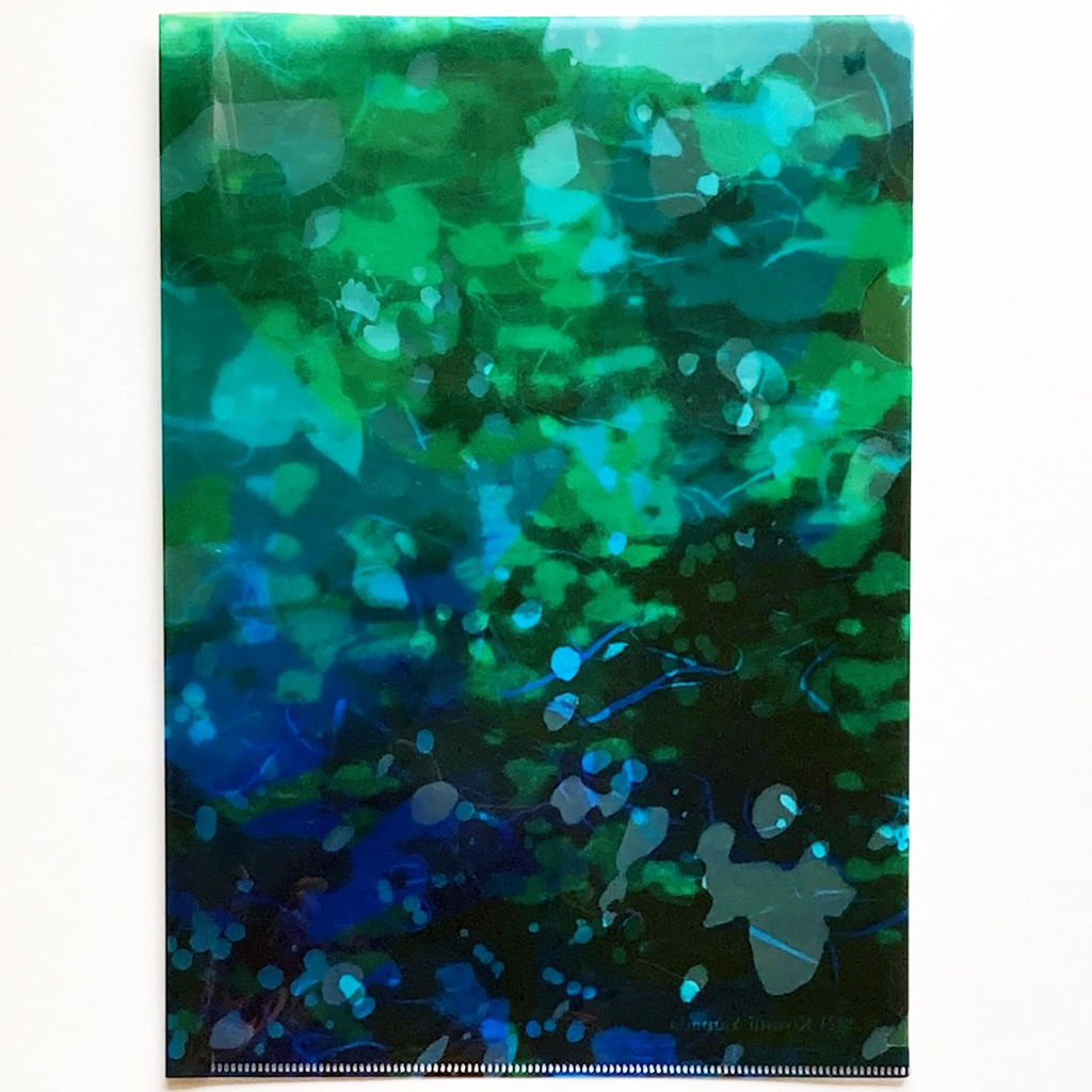 A4サイズのクリアファイルです。 作品「森の水」の原画の一部をレイアウトしています。 中紙を抜くとより深い水の色を感じます。